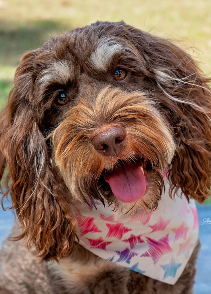 Mighty Aslan is as regal as his name suggest! He is an absolute delight, embodying an authentic and affectionate nature. He has a profound fondness for indulging in nice strolls in the garden and relaxing snuggle sessions watching the midday movie. As a medium-sized Cobberdog, he seamlessly amalgamates all the coveted attributes of the breed. Aslan effortlessly radiates a harmonious blend of serenity and calm, and grounded discernment, as well as unwavering devotion to his human. One cannot help but fall under the spell of his resplendent Chocolate and white straight coat, which further enhances his irresistible charisma. Aslan undeniably stands as a treasure, a cherished companion eager to shower his family with boundless affection and comforting warmth at every conceivable opportunity.